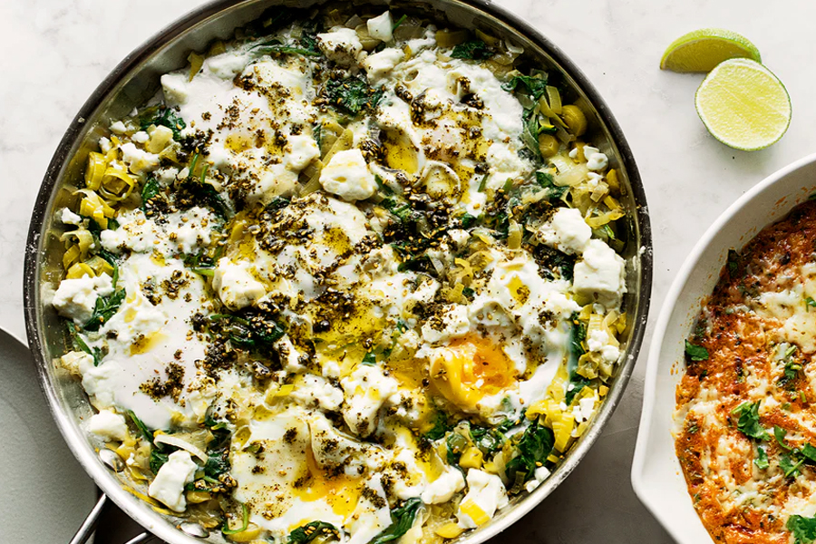 The leeks and spinach can be made up to a day ahead and kept in the fridge, ready for the eggs to be cracked in and braised.