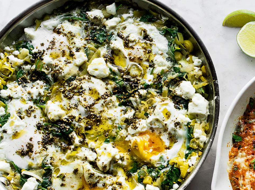 - Mix the za’atar with the remaining tablespoon of oil and brush over the eggs. Serve at once, straight from the pan.